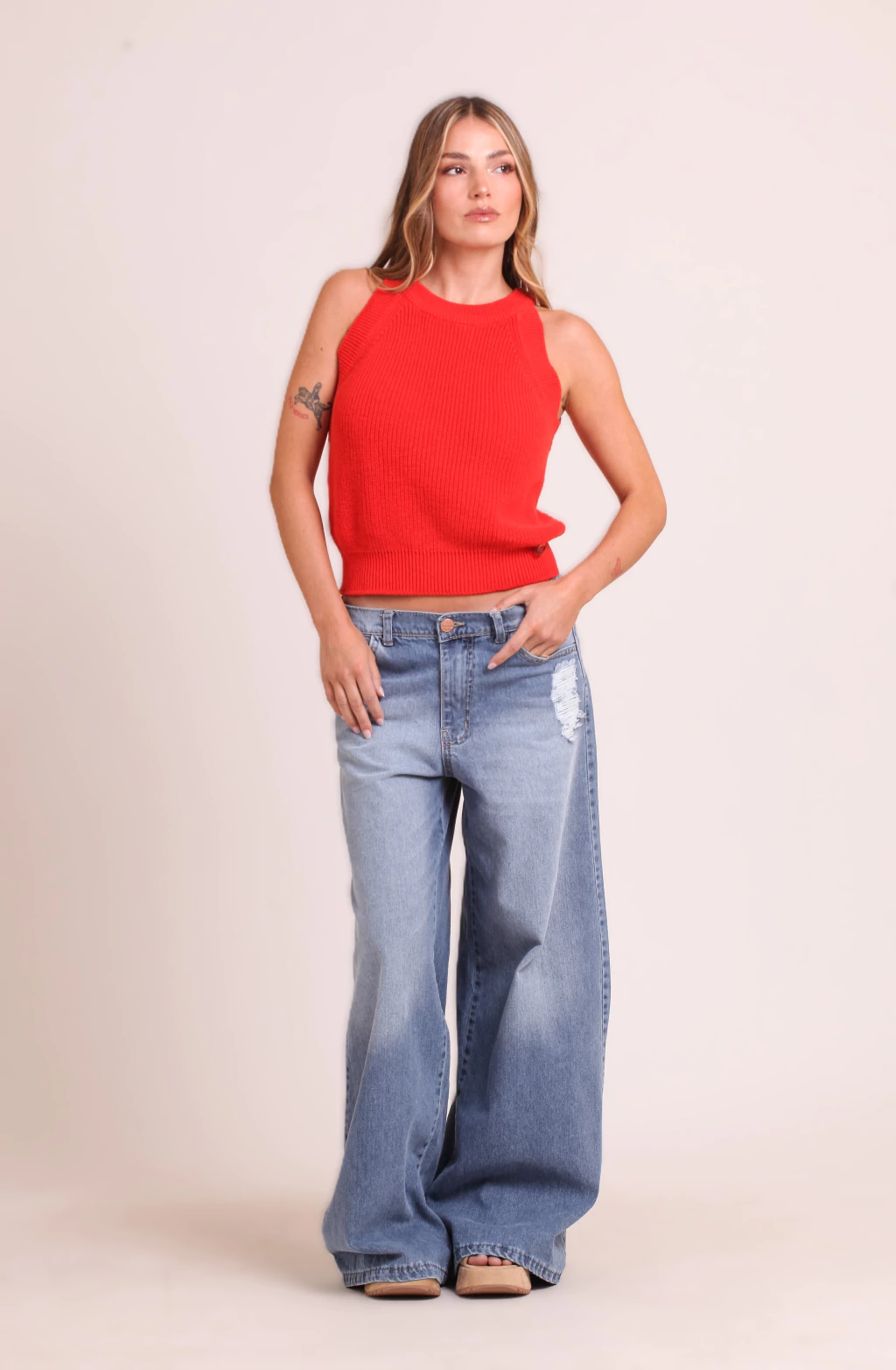 Esta musculosa se destaca por su diseño sencillo y canchero, que queda excelente combinada con prendas como jeans gastados o celestes, logrando un look relajado y moderno. Además, su versatilidad la convierte en una opción práctica para cualquier ocasión, desde salidas casuales hasta encuentros informales.