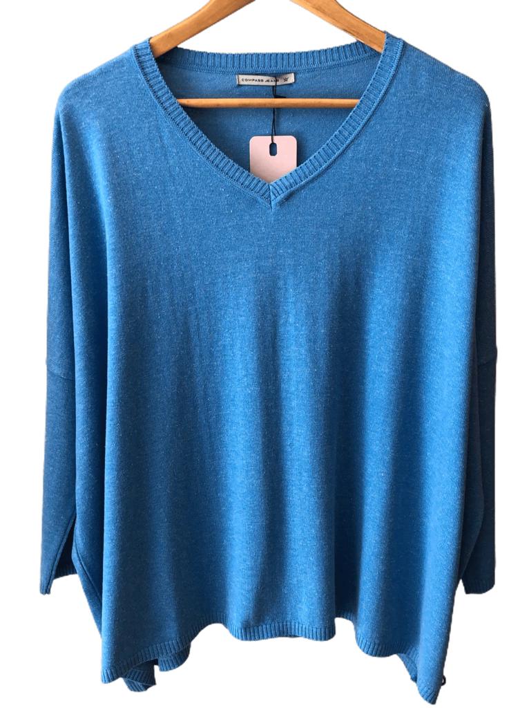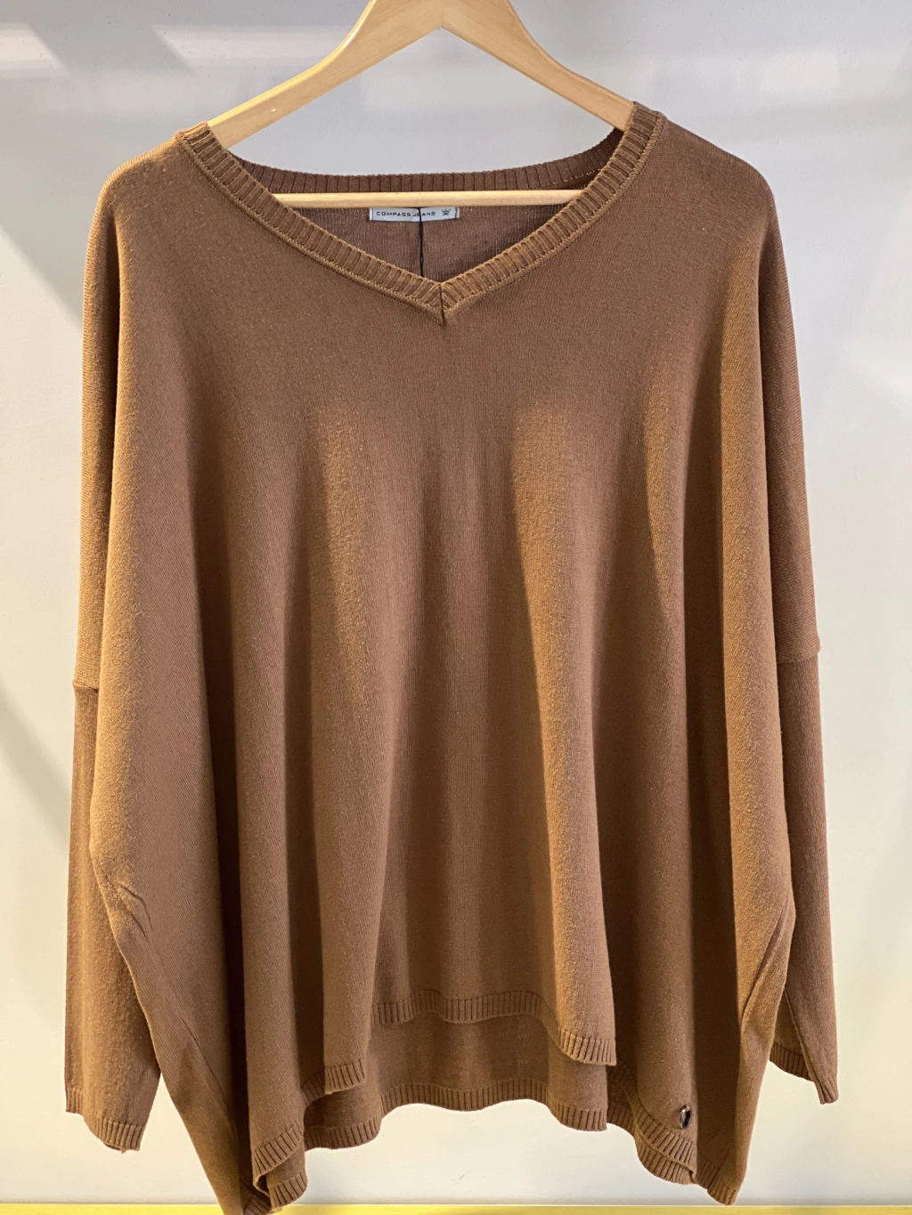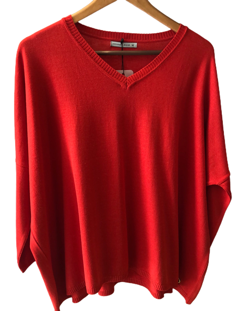 Sweater oversize, talle único. Composición: 50% algodón, 20 % lamswood, 20% poliamida, 10% poliéster.